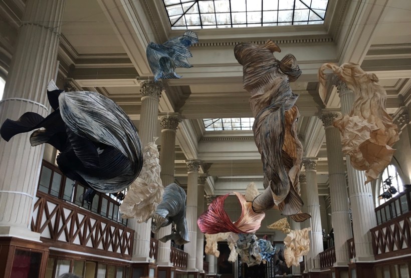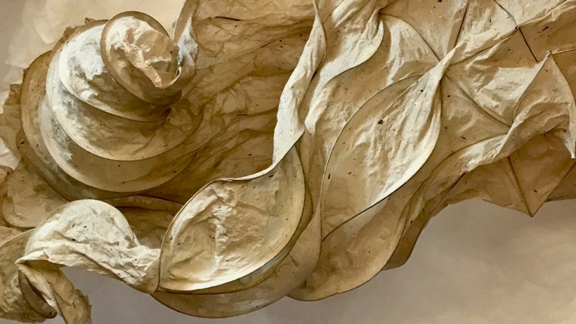 Peter's permanent installation is now on view after a very busy opening on November 11th, 2017. The installation shows a sea of porcelain with saffron colored sails among the waves, or, whatever your fantasy sees. The 50 meter long atrium is filled with 47 linen paper sculptures.